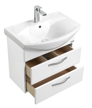 Комплектация: ручка - 2 шт., Регулируемый навес - 2 шт., Тумба - 1 шт., Выдвижной ящик (направляющие с интегрированной системой плавного закрывания) - 2 шт., раковина Смайл 50