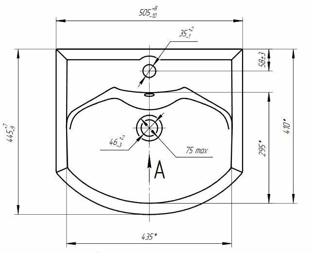 Раковина(мм): ширина 505, длина - 445, глубина - 190