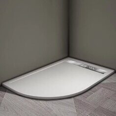 Размеры: 120x90х3 см. Материал: искусственный камень. Нагрузка на поддон: до 300 кг. Поверхность матовая. Душевой поддон асимметричный (правый)