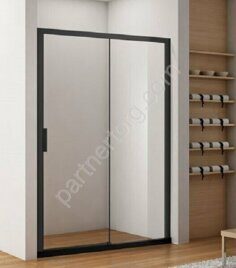 Размер: 140х200см. Профиль алюминий, черный. Стекло: прозрачное, 8мм. Раздвижная конструкция