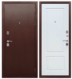 Тайга 7см дверь входная Темный медный антик, Эмалит белый с зеркалом