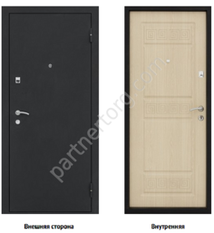 Размеры 880х2050, 960х2050 мм. Сталь: 1,2 мм. Основной замок «Гардиан» 3011. Дополнительный замок «Гардиан» 1201. 3 контура уплотнения. Внутренняя отделка Декоративная панель с филенчатым рисунком 16 мм. Доступен индивидуальный дизайн.