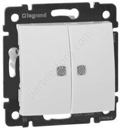Legrand Valena Classic выключатель 2-х клавишный 10АX 250В, безвинтовые зажимы, с подсветкой, цвет белый