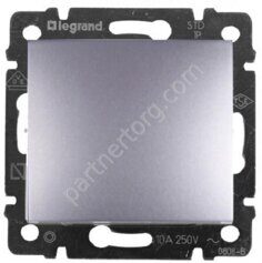 Legrand Valena Classic переключатель 1-клавишный 10АX 250В, безвинтовые зажимы, с лицевой панелью, цвет алюминий