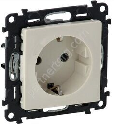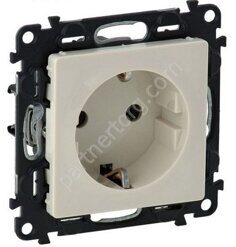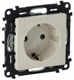 Номинальное напряжение 250. Номинальный ток 16А. Тип зажима жил провода: безвинтовые. С защитными шторками. С лицевой панелью. Цвет: слоновая кость. Суппорт в комплекте. Рамки продаются отдельно.