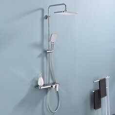 Верхний душ 27.5х22.5см. Назначение: для душа, для ванны. Материал: латунь. Держатель лейки на стойке. С термостатом. Цвет: хром
