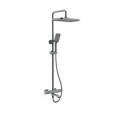 Высота 148см. Верхний душ 32,2х21,2см. Назначение: для душа, для ванны. Материал: латунь. Держатель лейки на стойке. Термостат. Цвет: графит