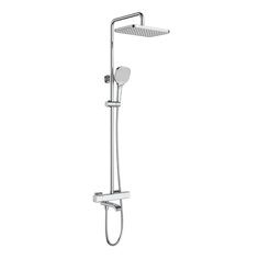 Высота 148см. Верхний душ 25х25см. Назначение: для душа, для ванны. Материал: латунь. Держатель лейки на стойке. Термостат. Цвет: хром