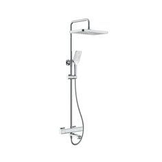 Высота 148см. Верхний душ 32,2х21,2см. Назначение: для душа, для ванны. Материал: латунь. Держатель лейки на стойке. Термостат. Цвет: хром