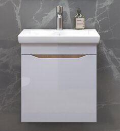 Grani 600-0-1 тумба навесная белая для ванной комнаты с умывальником Элина 60