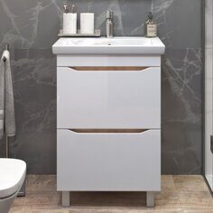 Grani 600-2-1 тумба белая для ванной комнаты с умывальником Элина 60