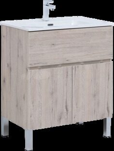 Алвита new 80 тумба напольная дуб веллингтон белый для ванной комнаты 1 ящик, 2 дверцы с раковиной-столешницей Flat 80 Aquanet