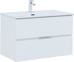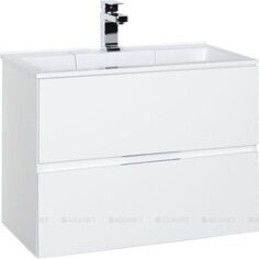Алвита new 80 тумба белая для ванной комнаты 2 ящика с раковиной Flat 80 Aquanet