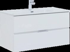 Алвита new 100 тумба белая для ванной комнаты 2 ящика с раковиной Flat 100 Aquanet
