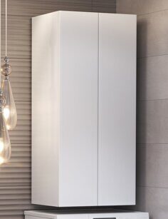 Размер: 64х35,9х199см. Цвет белый. 2 дверцы, петли с механизмом доводчика, 2 полки ЛДСП, интегрированная ручка
