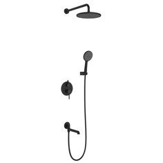 Цвет: графит. Монтаж: на стену. Тип: душевая система скрытого монтажа. Комплектация: верхний душ, ручной душ, смеситель, излив. Управление - рычажное.