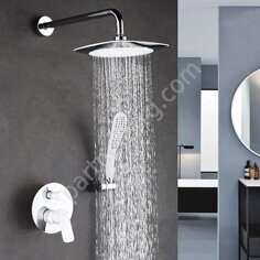 Встраиваемая душевая система с тропическим душем. Материал Латунь ЛЦ40C. Цвет: Белый матовый. Тип водозапорного механизма Керамический картридж 35 мм