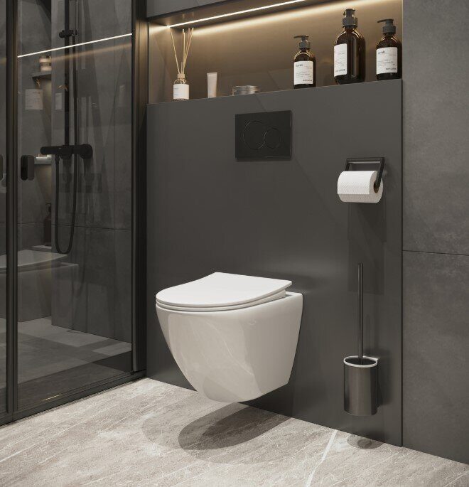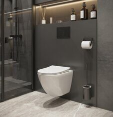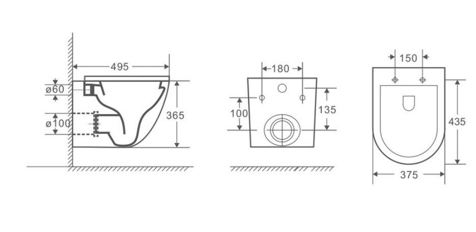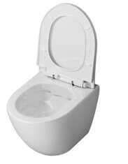 Размеры: 49,5х36,5х37,5 см. Безободковый. Цвет: белый. Сидение тонкое, быстросъемное с микролифтом в комплекте.