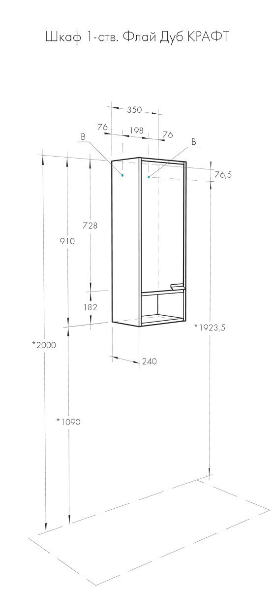 Размер: 91х35х24 см. Цвет: белый/дуб крафт. Комплект: полка, фасад-створка - 1 шт.