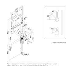• 2 ручки: для включения фильтрованной воды и обычной водопроводной (угол открывания ручки – 90 градусов, на себя; может отличаться в зависимости от партии). Фильтр в комплекте не идет и приобретается отдельно.