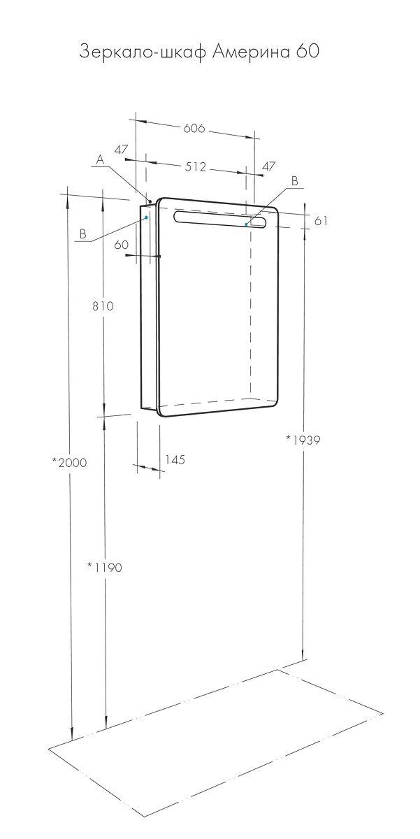 Америна 60 см шкаф - зеркало подвесной белый правый для ванной комнаты Aquaton