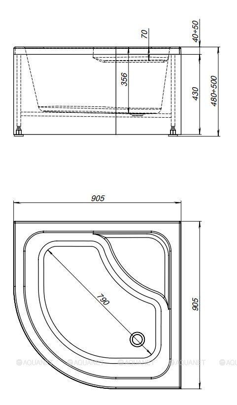 Размер: 90х90х50 см. Материал: акрил. Цвет: белый. Форма: полукруглая. Сифон приобретается отдельно. Устройство перелива есть в комплекте.
