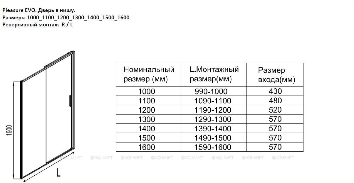 AquanetAquanet Pleasure Evo, 00312536, AE65-N120-CT, душевая дверь раздвижная, 120х190 см, прозрачное стекло