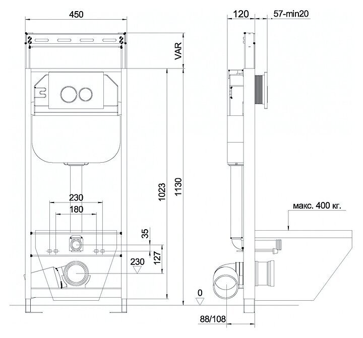 Подходит для унитазов практически любых размеров и модификаций. . Конструкция из цельного стального профиля 50*25 мм толщиной 2,0 мм рассчитана на нагрузку до 400 кг. При этом имеет ширину всего 45 см, что позволяет установить изделие в небольших помещениях.