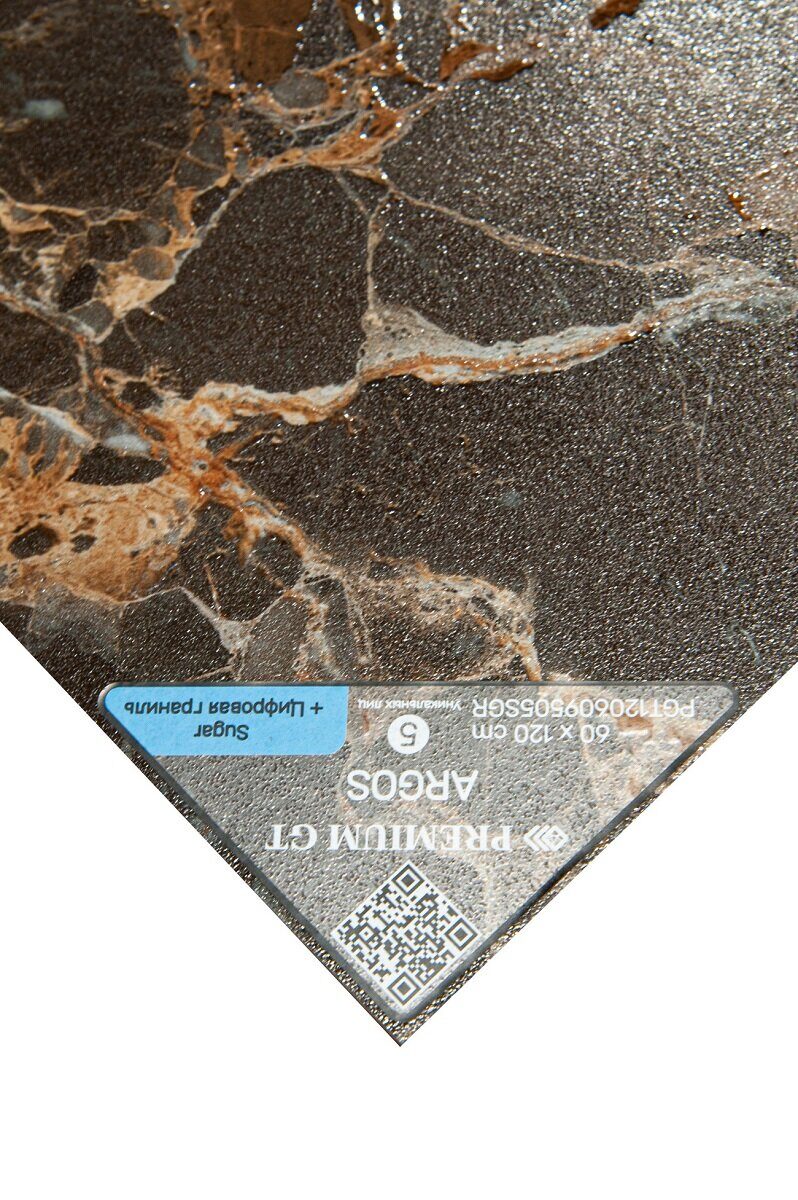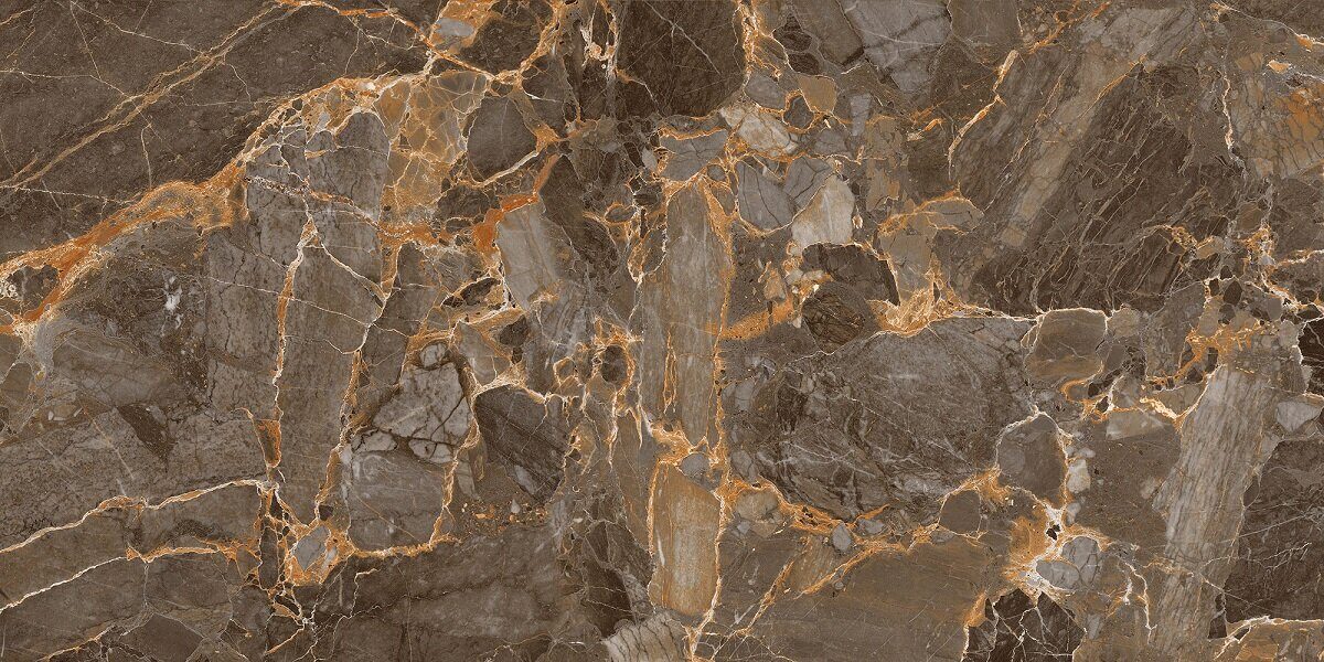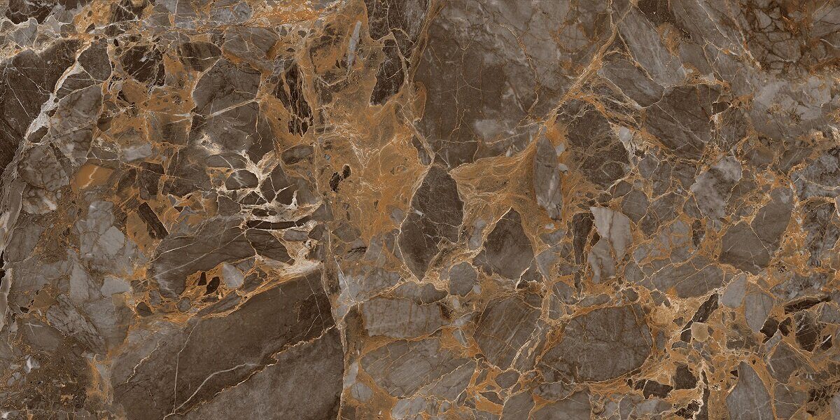 Коллекция керамогранита Argos от Global Tile сочетает в себе темно-серый, почти черный, фон с теплыми золотисто-коричневыми прожилками и включениями, имитируя один из самых элитных разновидностей мрамора – Breccia.