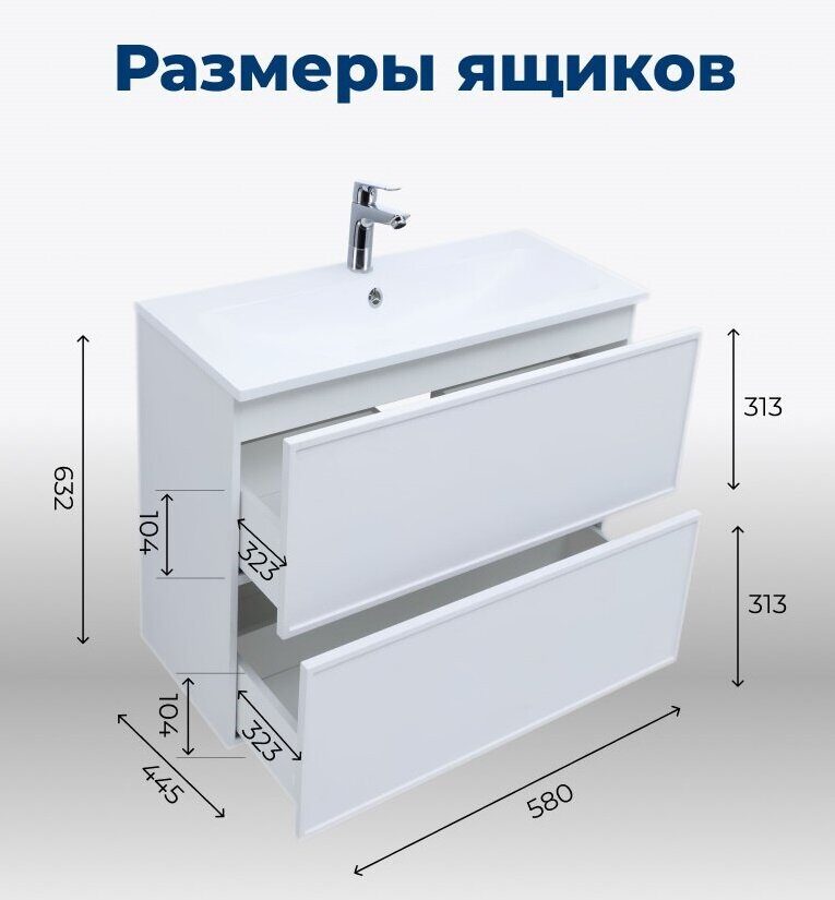 Размер: 58х44,5х63,2 см. Цвет: белый матовый. Комплект: 2 ящика, раковина-столешница Арт 60