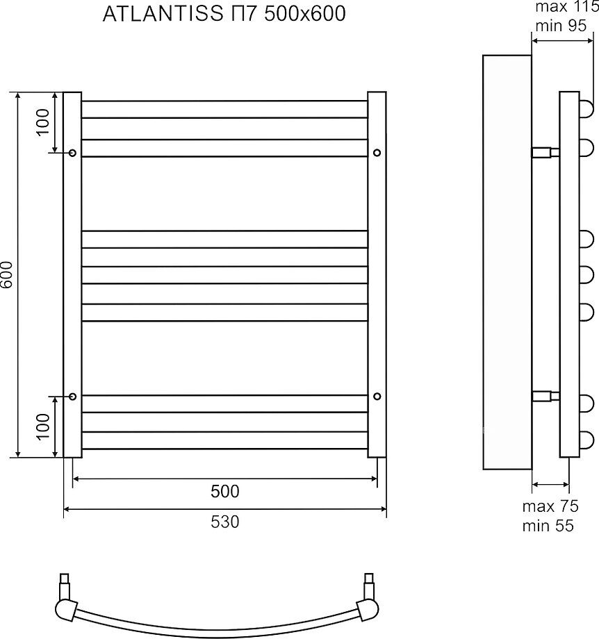 LemarkAtlantiss П7 LM32607REBL полотенцесушитель электрический 50х60см, черный Lemark