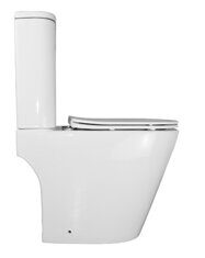 Размеры: 38,5х61,5х80,5 см. Выпуск универсальный, Безободковый. Смыв Торнадо.  Материал: санфарфор. Сидение дюропласт,  быстросъемное,  с микролифтом в комплекте.