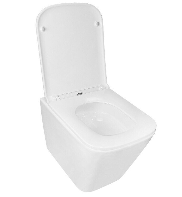 Квадратный подвесной безободковый унитаз с современной, эффективной и малошумной системой смыва - Торнадо, в комплекте с сидением быстросъемным с микролифтом