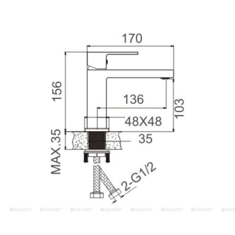 Комплект: Смеситель, подводка. Управление - рычажное.