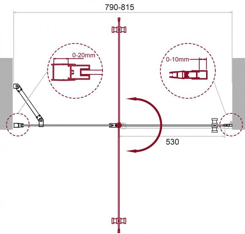 Регулировка ширины: предусмотрена за счет боковых профилей