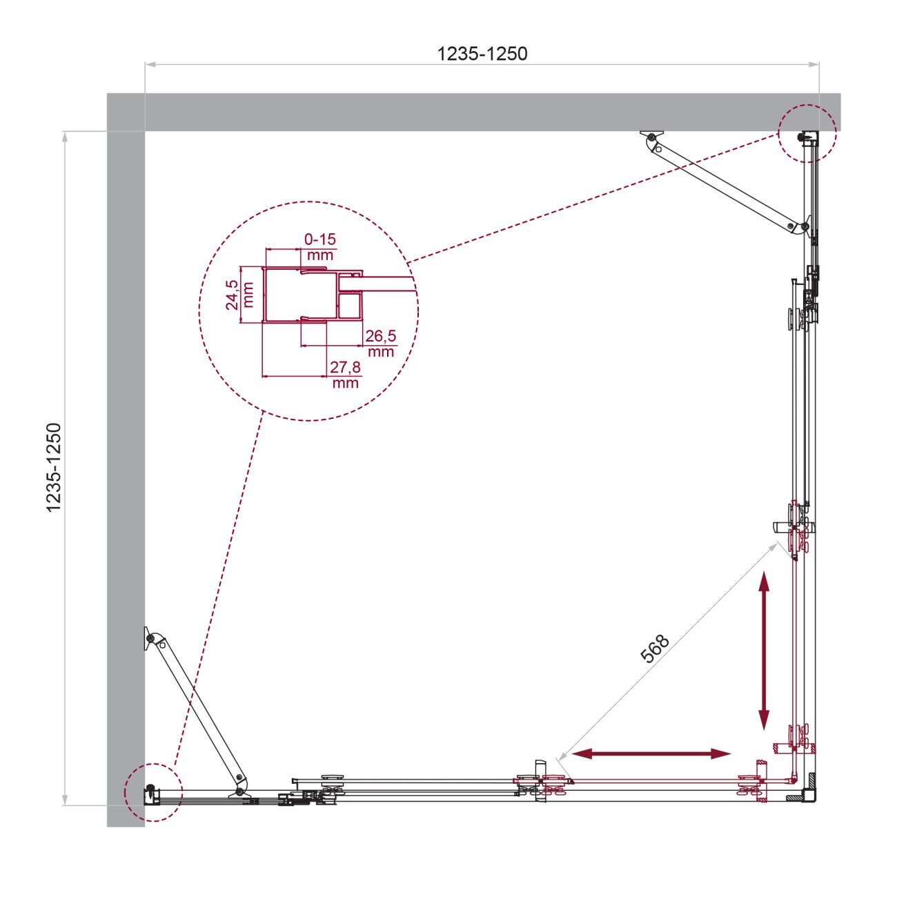 Размер: 125х125х195 см. Ширина входа, см: 56,8