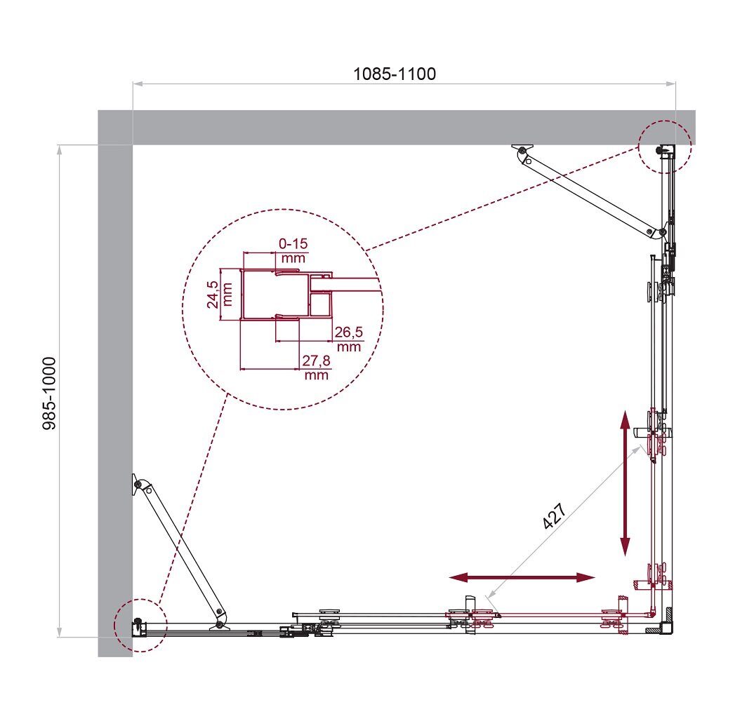 BelbagnoBelBagno LUCE-AH-22-110/100-C-Cr душевой уголок 110х100х195 см, дверь раздвижная, стекло прозрачное, профиль хром
