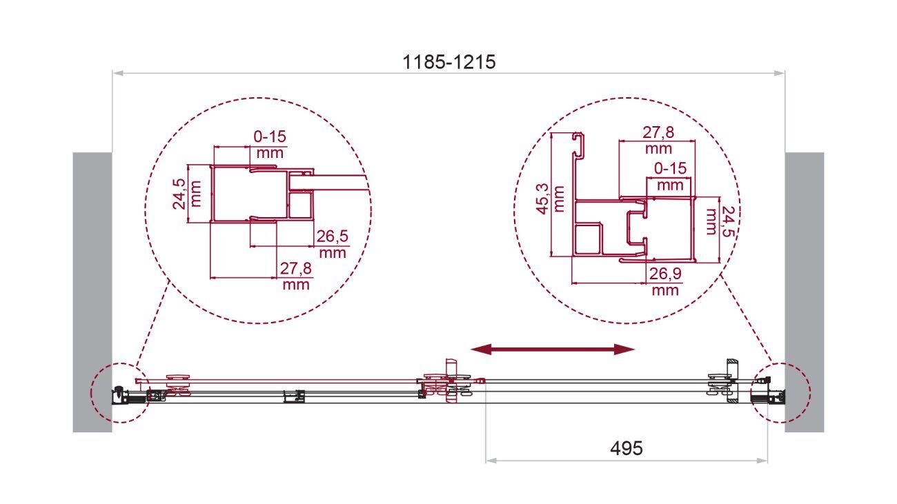 Регулировка ширины: предусмотрена за счет боковых профилей