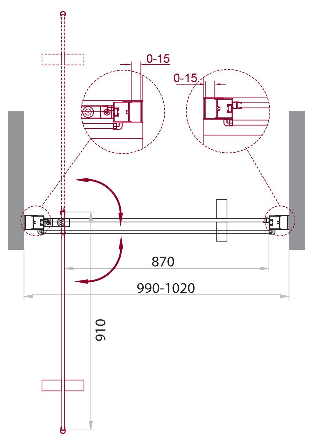 Регулировка ширины: предусмотрена за счет боковых профилей