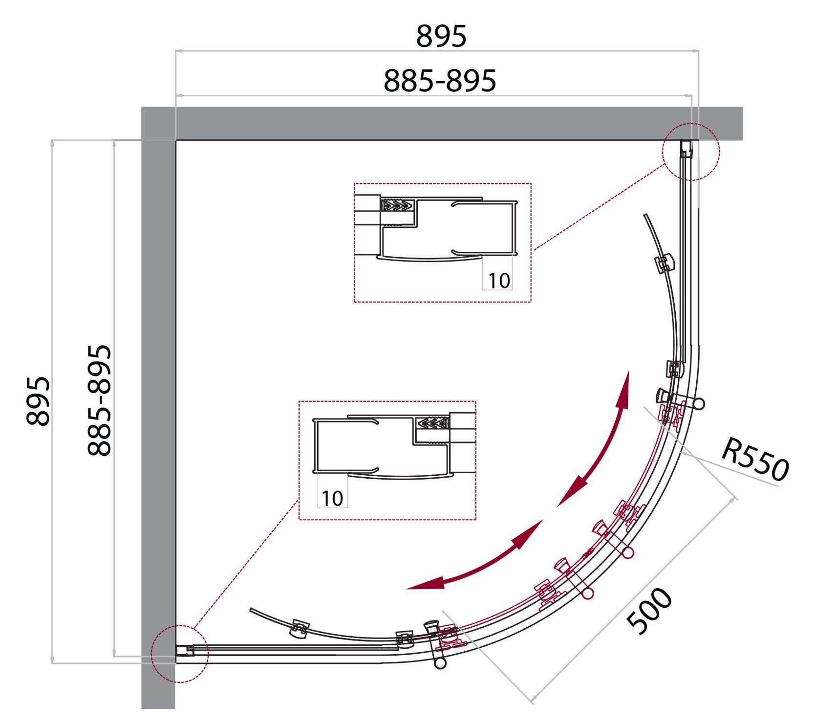 Размер: 90х90х195 см. Ширина входа, см: 50