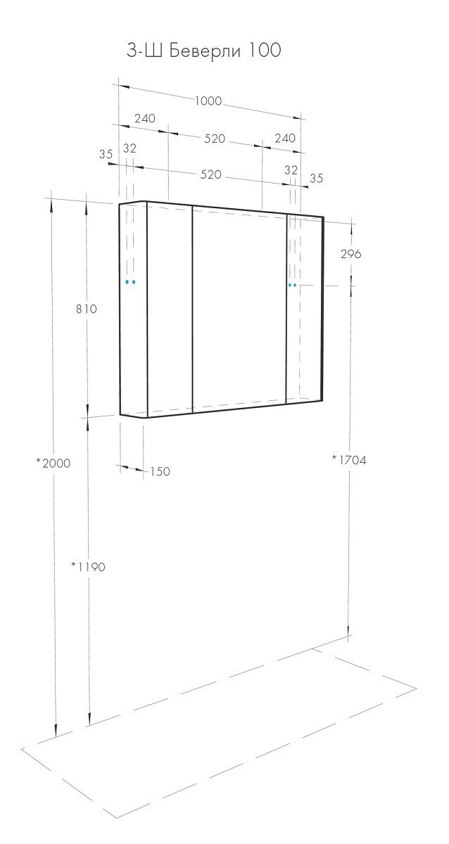 Размеры (Высота х Ширина х Глубина): 810x1000x150 мм