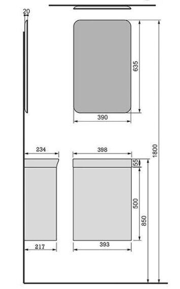 Фасад: 2 влагостойких зеркальных полотна, ABS-пластик