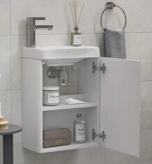 Размер: 39,3х21,7х50 см. Цвет: белый. Полочка из влагостойкой ЛДСП за распашной дверцей. В комплекте раковина Bio 40