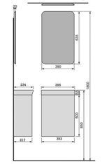 Размер: 79,6х17х79см. Фасад: 2 влагостойких зеркальных полотна, ABS-пластик. Светодиодная подсветка по периметру, включение: сенсор; внутри 2 полки из стекла на стеклодержателях