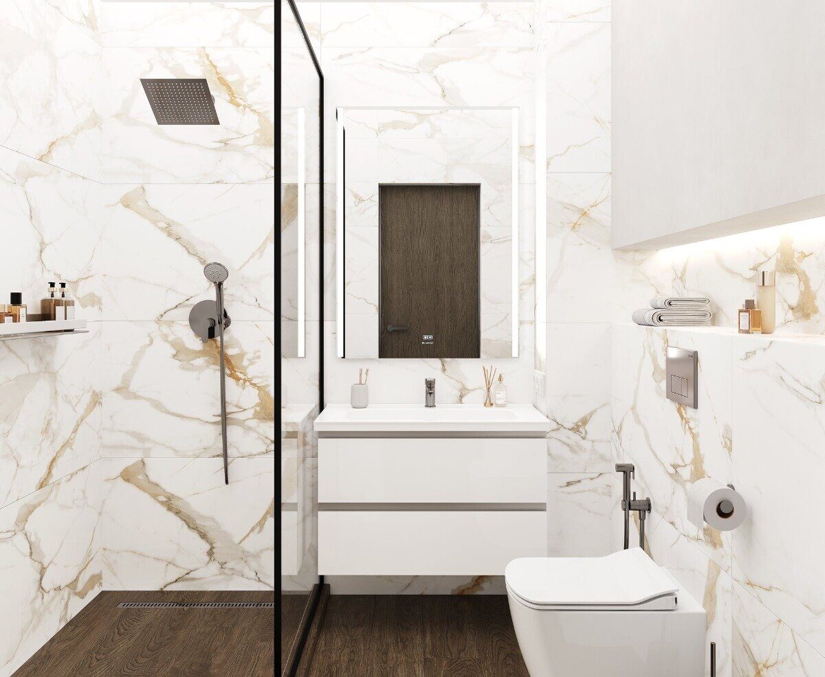 У нас можно подобрать всю необходимую сантехнику, мебель для ванных комнат, напольные покрытия, межкомнатные двери...