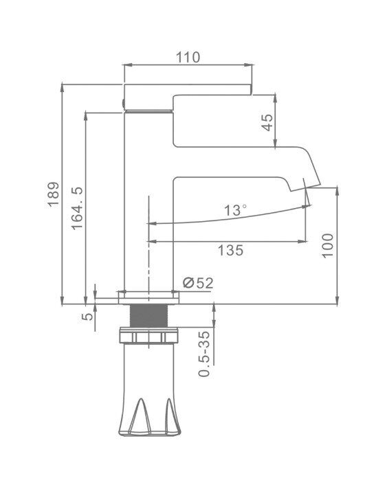 Длина излива 13,5 см. Назначение: для раковины. Способ монтажа: на одно отверстие.  Цвет: Сатин золотой