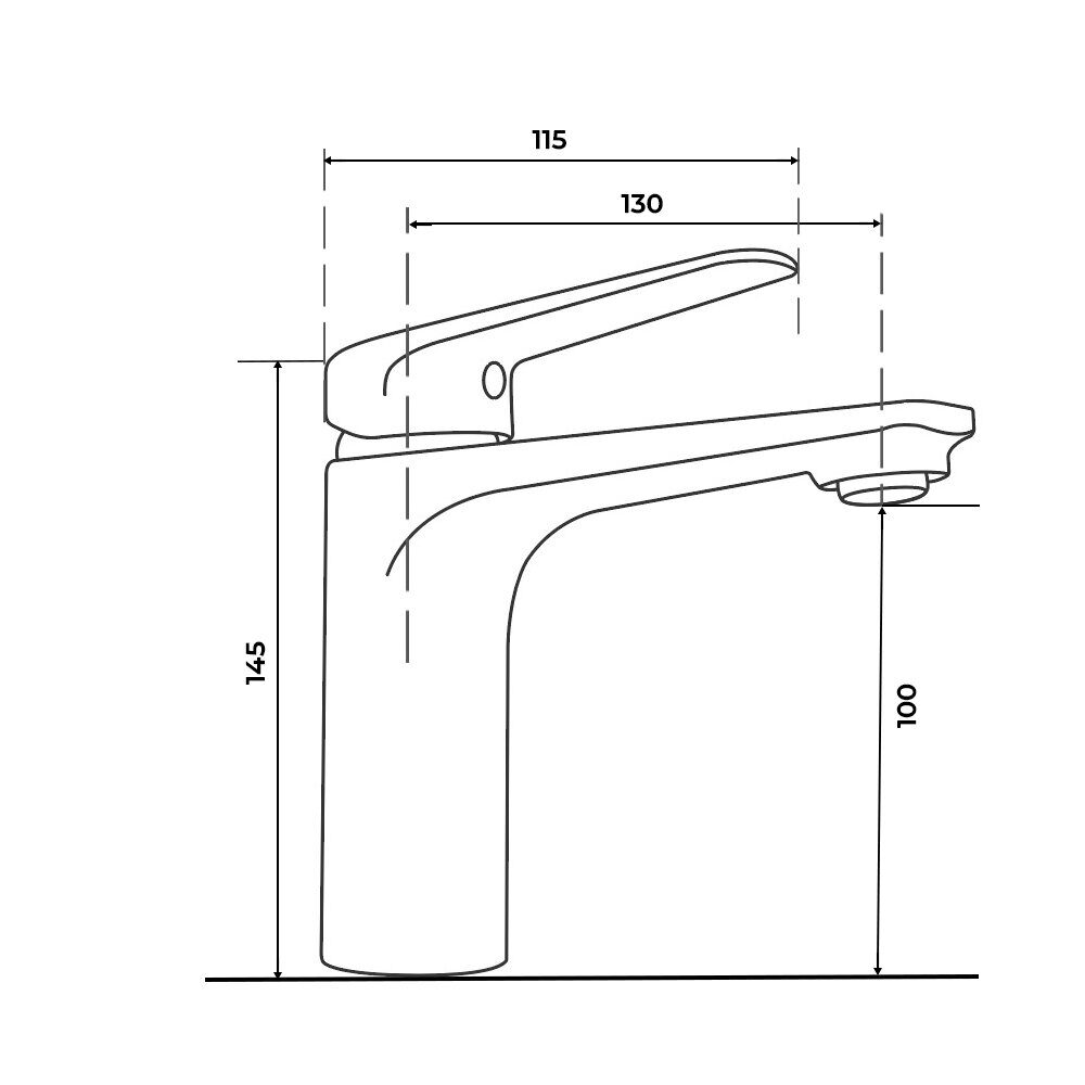 Высота: 14,5 см. Длина излива 13 см. Назначение: для раковины. Способ монтажа: на одно отверстие.  Цвет: Оружейная сталь
