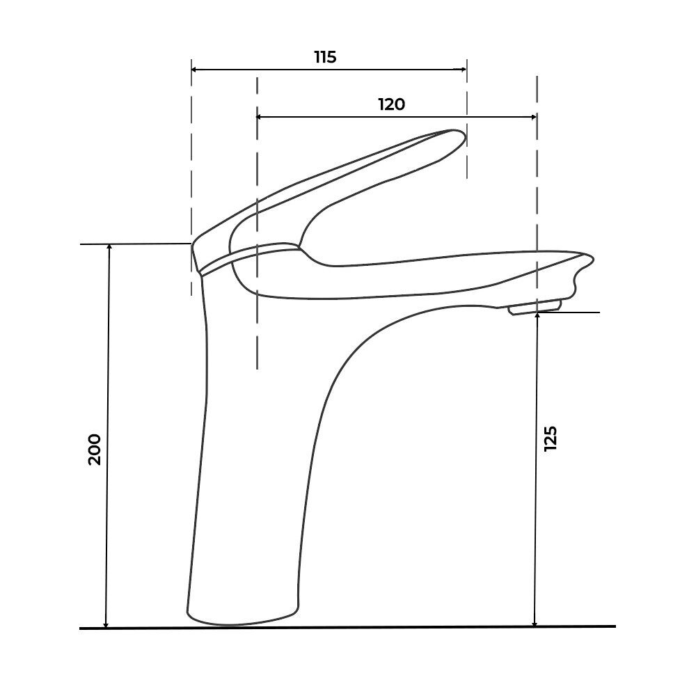 Высота: 20 см. Длина излива 12 см. Назначение: для раковины. Способ монтажа: на одно отверстие.  Цвет: Оружейная сталь