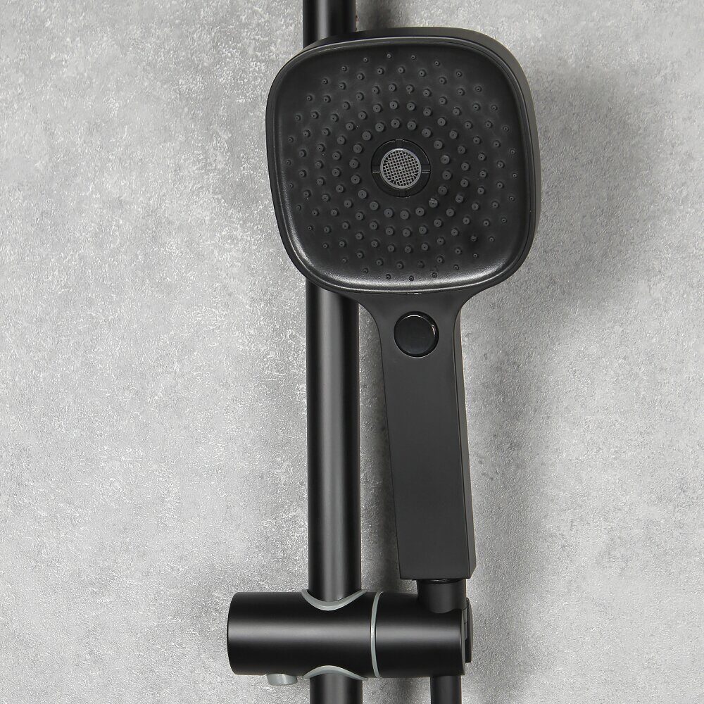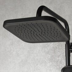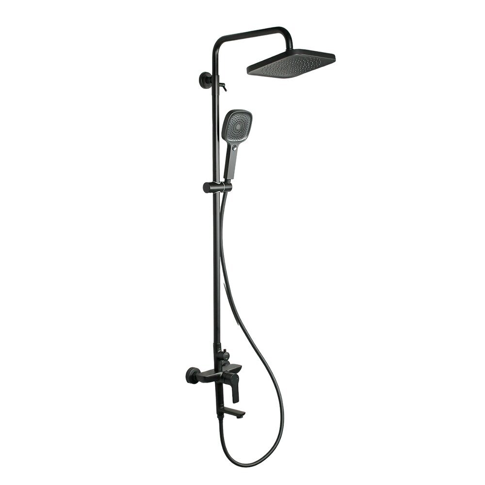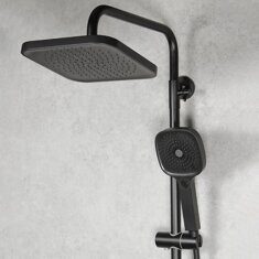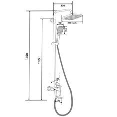 Высота 145см.  Верхний душ 22,5х22,5см. Ручная лейка 11,5х12см. Материал основной: латунь.  Цвет: Черный