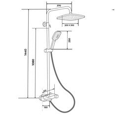 Высота 144см.  Верхний душ 20х30см. Ручная лейка 25см. Материал основной: латунь.  Цвет: Хром